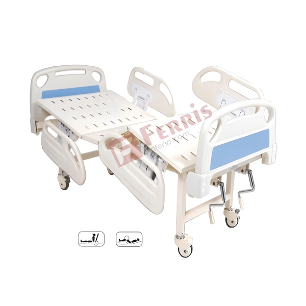 The Fowler Bed Mechanical (FHF 004A) is a durable and reliable hospital bed designed for patient comfort and easy caregiver operation. It features a 4-section mattress platform made of CRCA sheet and manual crank mechanisms for adjusting the backrest and knee rest. With ABS head and foot panels, side safety rails, and smooth-moving castor wheels with brakes, this bed is ideal for hospitals, clinics, and home care environments.