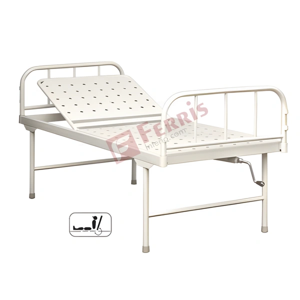 The Semi-Fowler Bed Standard (FHF 005B) is a durable and functional hospital bed designed to provide essential comfort and support for patients. It features a 2-section mattress platform with a manual crank mechanism for backrest adjustment. Built with a strong epoxy powder-coated metal frame and stable head and foot bows, this bed is suitable for hospitals, clinics, nursing homes, and home patient care.