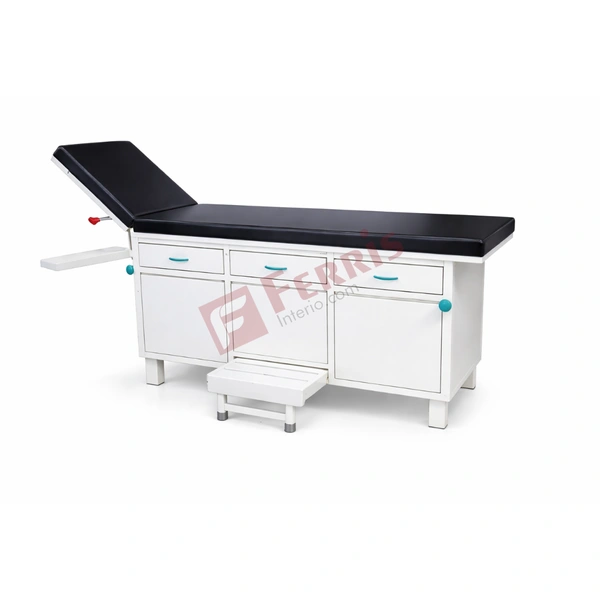 The Examination Couch – Standard (FHF 013A) is built with a sturdy metal frame and designed for everyday clinical examinations. It features a comfortable cushioned top with an adjustable backrest, allowing flexibility for patient positioning. The couch includes multiple storage cabinets and drawers for organizing medical tools and essentials. Its simple, functional design makes it ideal for clinics and hospitals.